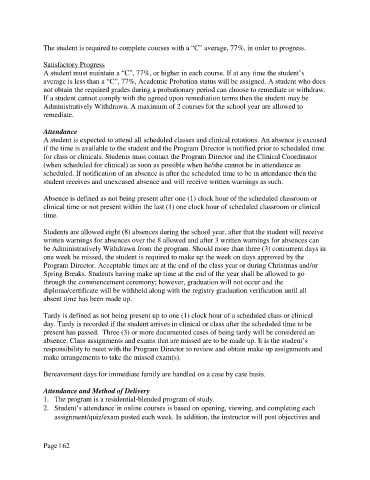 average is less than a “C”, 77%, Academic Probation status will be assigned. A student who does