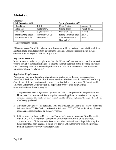 identified in both the Applicant & Admission section and school specific section of the Catalog.