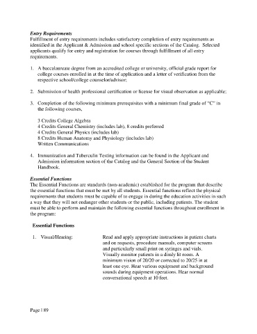 the essential functions that must be met by all students. Essential functions reflect the physical