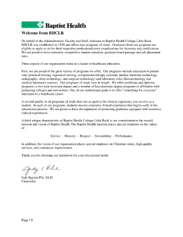 On behalf of the Administration, Faculty and Staff, welcome to Baptist Health College Little Rock.