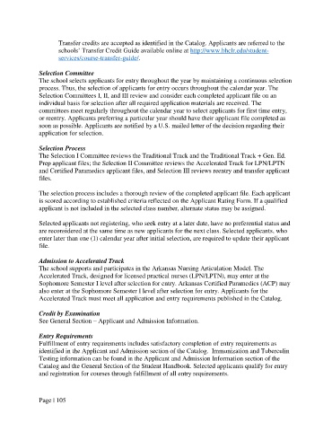 Catalog and the General Section of the Student Handbook. Selected applicants qualify for entry