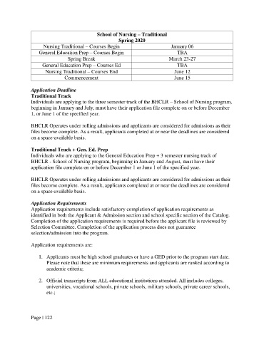 BHCLR - School of Nursing program, beginning in January and August, must have their