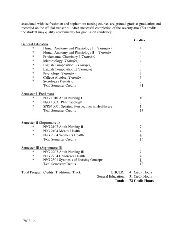 associated with the freshman and sophomore nursing courses are granted gratis at graduation and