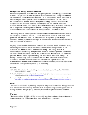 classroom and skill exercised in the fieldwork setting. The faculty believes in