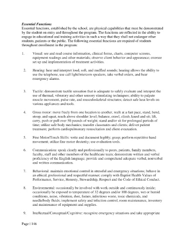 Essential functions, established by the school, are physical capabilities that must be demonstrated