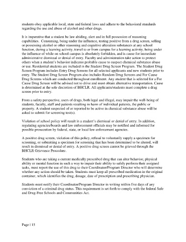 is determined at the sole discretion of BHCLR. All applicants/students must complete a drug