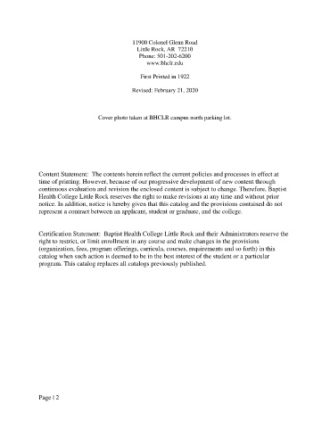 Certification Statement: Baptist Health College Little Rock and their Administrators reserve the
