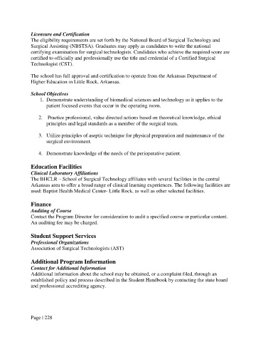 Surgical Assisting (NBSTSA). Graduates may apply as candidates to write the national