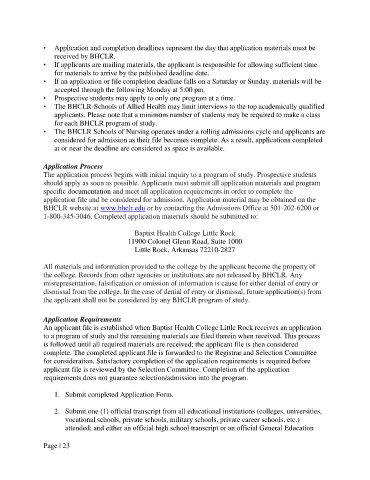 • The BHCLR Schools of Nursing operates under a rolling admissions cycle and applicants are