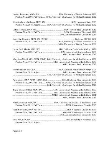 Position Year, 2018, Adjunct .......................................... BSN, Arkansas State University, 2013