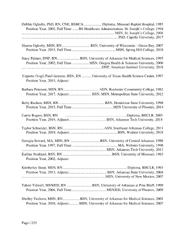 Position Year, 2019, Adjunct……………………..……BSN, Arkansas Tech University, 2018