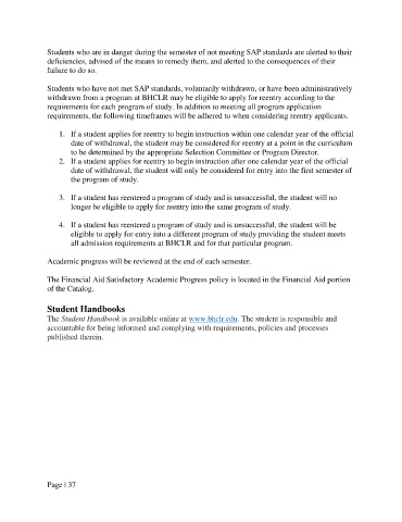 withdrawn from a program at BHCLR may be eligible to apply for reentry according to the