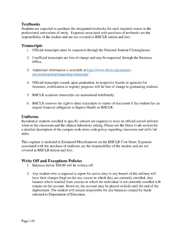 professional curriculum of study. Expenses associated with purchase of textbooks are the