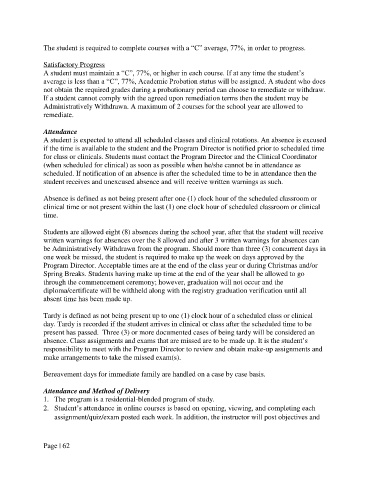 The student is required to complete courses with a “C” average, 77%, in order to progress.