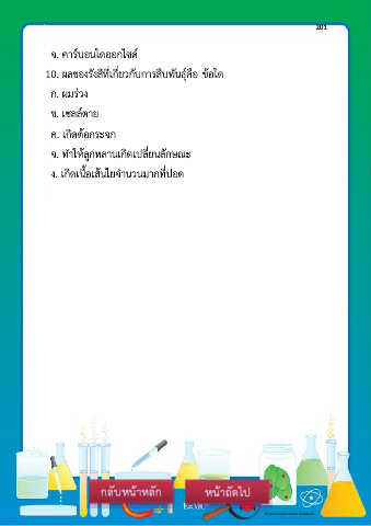 201 จ. คาร์บอนไดออกไซด์ 10. ผลของรังสีที่เกี่ยวกับการสืบพันธุ์คือ ข้อใด ก. ผมร่วง ข. เซลล์ตาย ค. เกิดต้อกระจก จ. ทําให้ลูกหลานเกิดเปลี่ยนลักษณะ ง. เกิดเนื้อเส้นใยจํานวนมากที่ปอด