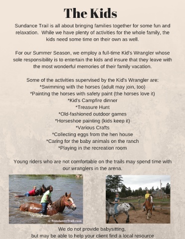 For our Summer Season, we employ a full-time Kid's Wrangler whose
