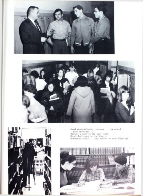 Good student-faculty relations . . . the school runs smoothly . . . Always a rush to the next room! Study hall spent in the library: Numerous books . . . any subject at your fingertips.