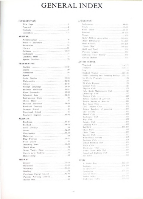 Christmas Choral Concert ...........................82-83 General Index ................................