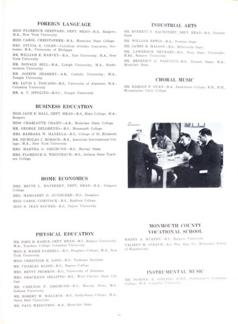 MISS FLORENCE SHEPPARD, DEPT. HEAD—B.A., Rutgers; MR. EVERETT F. MACWITHEY, DEPT. HEAD—B.S., Trenton