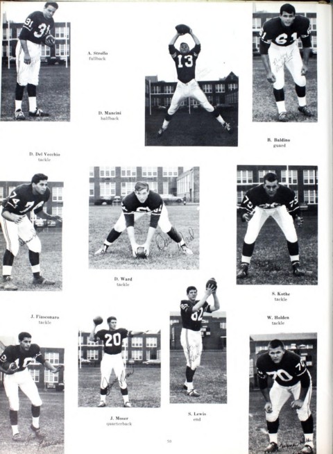 A. Strollo fullback D. Mancini halfback B. Baldino guard D. Del Vecchio tackle D. Ward tackle S. Kothe tackle J. Fiasconaro W. Holden tackle tackle i l l ® S. Lewis J. Moser end quarterback