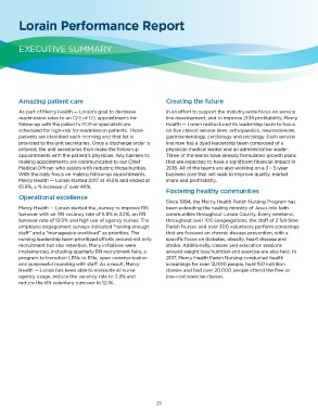 A s p art of M er c y H e alt h — L or ai n’ s g o al t o d e cr e a s e I n a n e ff ort t o s u p p ort t h e mi ni str y- wi d e f o c u s o n s er vi c e