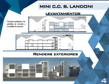 MINI C.C. B. LANDONI levantamientos Fachadaacristalada,con pantallas de concreto y romanillasdealuminio. Renders exteriores 4