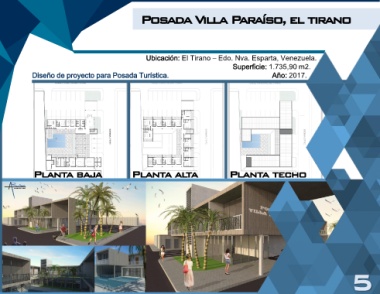 Posada Villa Paraíso, el tirano Ubicación: El Tirano – Edo. Nva. Esparta, Venezuela. . Superficie: 1.735,90 m2. . Diseño de proyecto para Posada Turística. Año: 2017. . Planta baja Planta alta Planta techo 5
