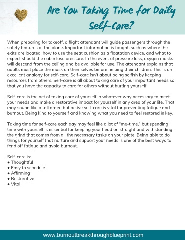 excellent analogy for self-care. Self-care isn't about being selfish by keeping