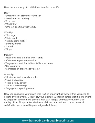 do it to avoid burnout. Most of all, your example will teach others that it is important