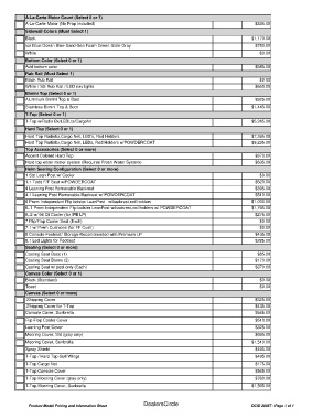 Product Model Pricing and Information Sheet DCID 20057 - Page 1 of 1