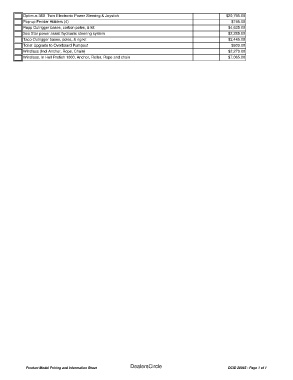 Product Model Pricing and Information Sheet DCID 20065 - Page 1 of 1