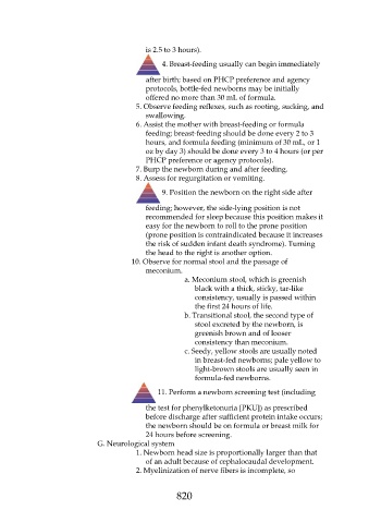 hours, and formula feeding (minimum of 30 mL, or 1