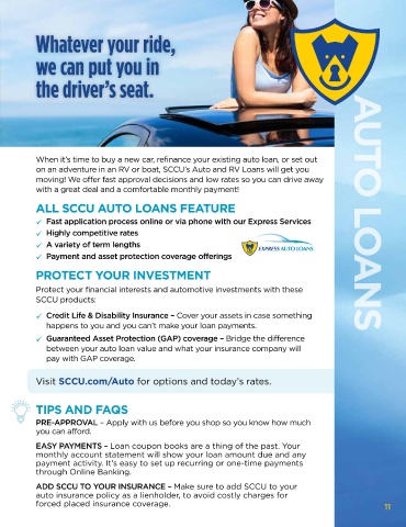SCCU to make the experience quicker and easier. To help ensure serious Visit SCCU .com/Auto for options and today’s rates.
