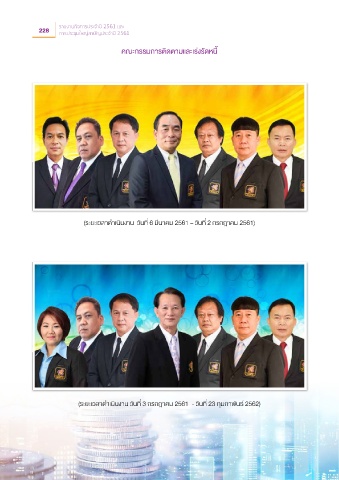 รายงานกิจการประจำาปี 2561 และ 228 การประชุมใหญ่สามัญประจำาปี 2561 คณะกรรมการติดตามและเร่งรัดหนี้ (ระยะเวลาด�าเนินงาน วันที่ 6 มีนาคม 2561 – วันที่ 2 กรกฎาคม 2561) (ระยะเวลาด�าเนินงาน วันที่ 3 กรกฎาคม 2561 - วันที่ 23 กุมภาพันธ์ 2562)