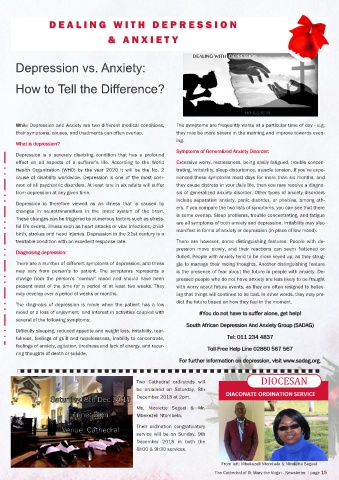 fulness, feelings of guilt and hopelessness, inability to concentrate, Tel: 011 234 4837