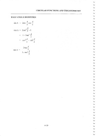 CIRCULAR FUNCTIONS AND TRIG ONOMETRY HALF ANGLE IDENTITIES AA srn A - 2s1n -cos - 22 A cos A - 2cos2 j I , ^.zA : I -ZStn - 2 zA . tA : cos-- stn- 22 2an4 tanA: 2 I tan'4 2 4-29