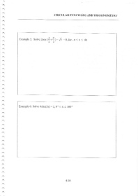 CIRCULAR FUNCTIONS AND TRIGONOMETRY Example 5: Solve Z.os{!+[)- ..6 - O, for -t < x < 4n Example 6: Solve 4sin (3x) - 2, 0" < x < 360" 4-38