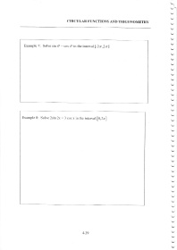 CIRCULAR FUNCTIONS AND TRIGONOMETRY Exampf e 7: Solve sin 0 - cos 0 in the interval [-2t ,2n] Example 8: Solve 2sin 2x - 3 cos x in the interval [0,221 4-39