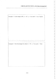 CIRCULAR FUNCTIONS AND TRIGONOMETRY : : Example 2: In the triangle ABC, A = 60 " , a 6 cm and b 5 cm. Find B. Example l: Solvc the triangle for which A - 30 ' , a - 8 cm and c - I 0cm. 4-43