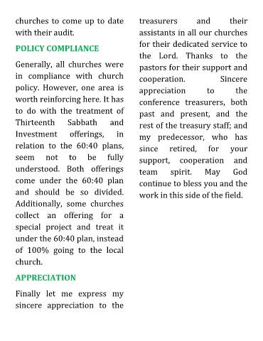 churches to come up to date treasurers and their