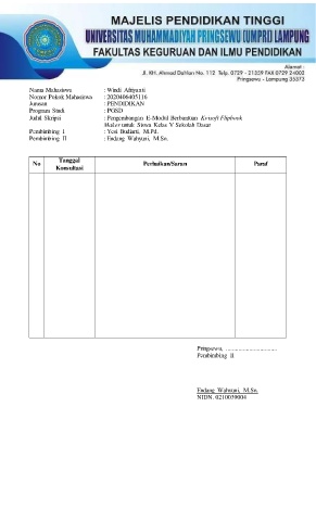 Pembimbing I : Yesi Budiarti, M.Pd.