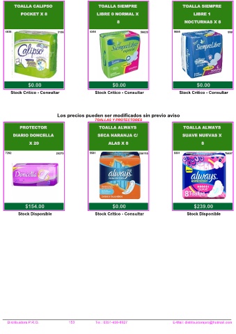 Distribuidora P.R.O. 153 Tel.: 0351-458-8927 E-Mail: distribuidorapro@hotmail.com