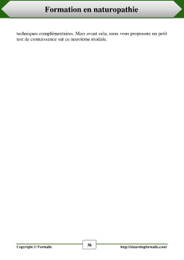 Formation en naturopathie techniques complémentaires. Mais avant cela, nous vous proposons un petit test de connaissance sur ce neuvième module. 36 Copyright © Formalis http://elearningformalis.com/