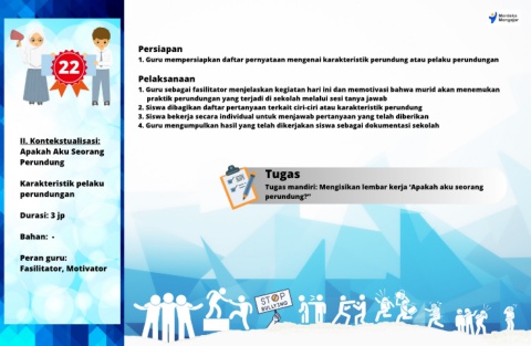 22 1. Guru mempersiapkan daftar pernyataan mengenai karakteristik perundung atau pelaku perundungan