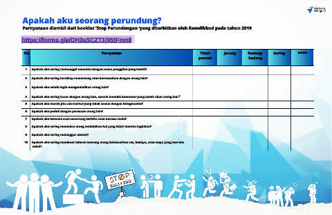 Pernyataan diambil dari booklet ‘Stop Perundungan ‘yang diterbitkan oleh Kemdikbud pada tahun 2019