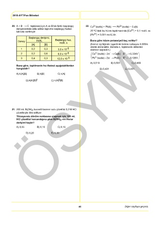 20. A + B C tepkimesi için A ve B’nin farklı başlangıç 22. Cu 2+ (suda) + Pb(k) Pb 2+ (suda) + Cu(k)
