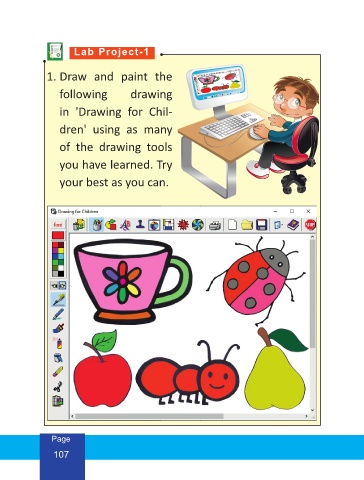 Lab Project-1 1. Draw and paint the following drawing in 'Drawing for Chil- dren' using as many of the drawing tools you have learned. Try your best as you can. Page 107