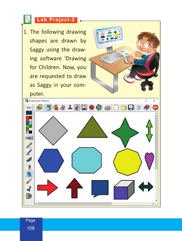Lab Project-2 1. The following drawing shapes are drawn by Saggy using the draw- ing software 'Drawing for Children. Now, you are requested to draw as Saggy in your com- puter. Page 108