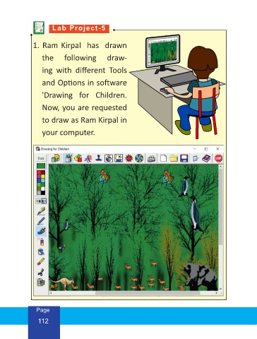 Lab Project-5 1. Ram Kirpal has drawn the following draw- ing with different Tools and Options in software 'Drawing for Children. Now, you are requested to draw as Ram Kirpal in your computer. Page 112