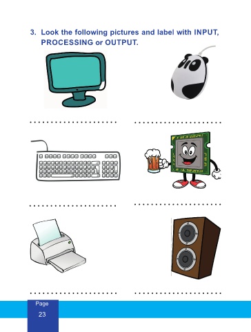 3. Look the following pictures and label with INPUT, PROCESSING or OUTPUT. Page 23